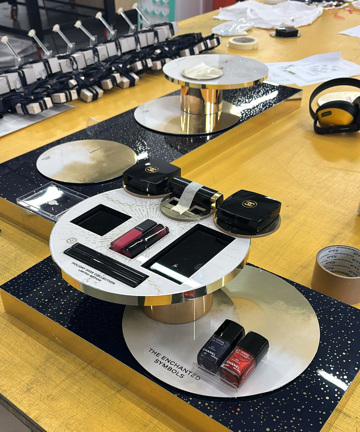 Nous assurons le montage et l’installation de vos décors, mobiliers, PLV et visuels dans ces environnements spécifiques, avec réactivité, discrétion et maîtrise des contraintes logistiques.